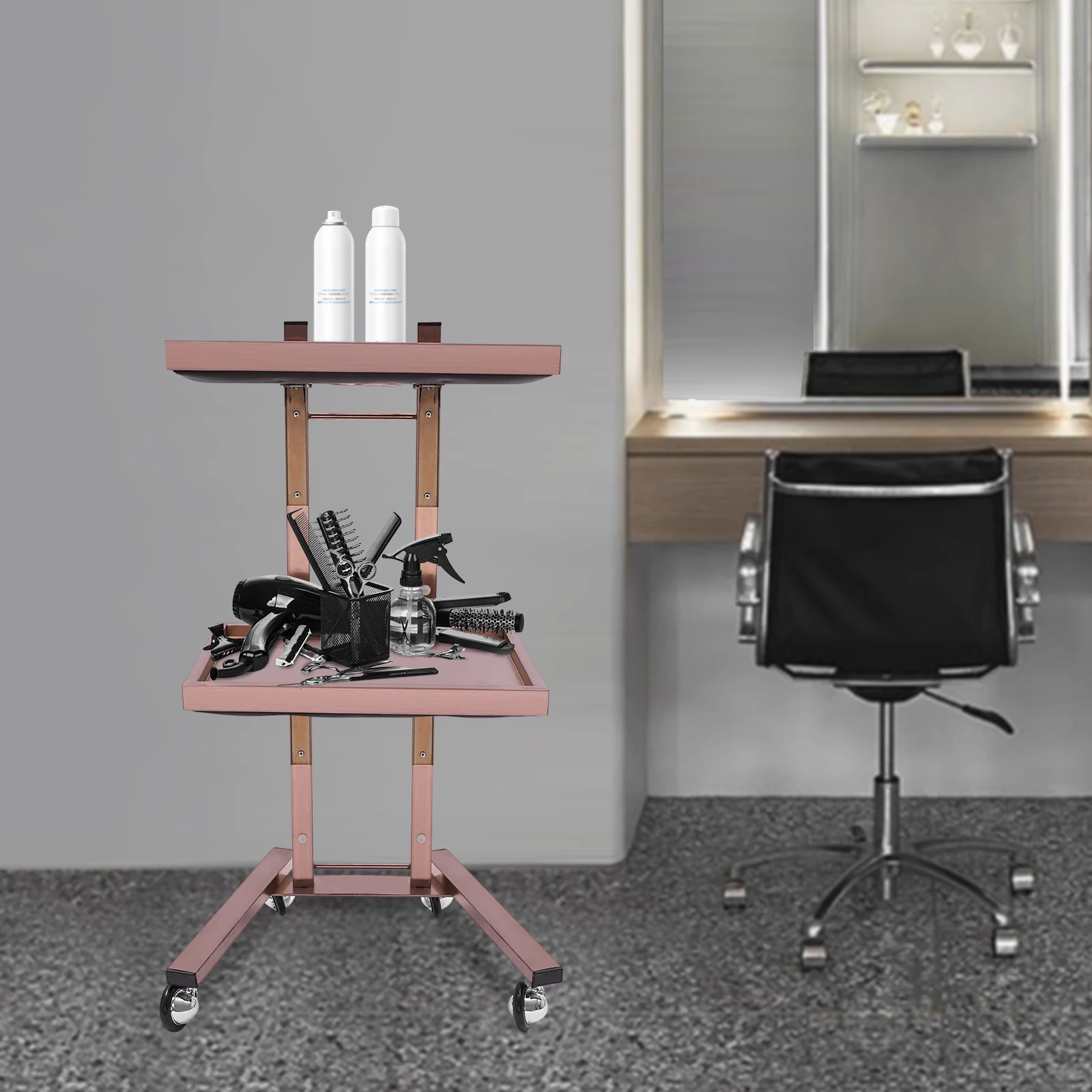 2-tier Large Capacity: It features a 2-tier design that allows you to place items with different functions in the appropriate zones. The trays provide plenty of space to store salon items or cosmetic appliances, and the top tray of the trolley also provides a large work surface for professional use.