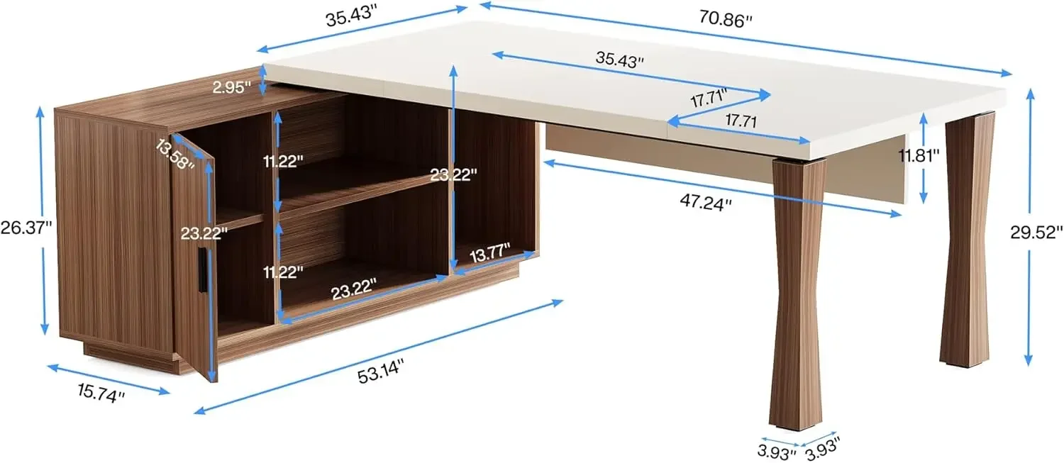 71-Inch Executive Desk, L-Shaped Desk with Cabinet, Large Office Desk with Storage Shelves, Writing Table Desk Business Furniture Set for Home Office, Cream White