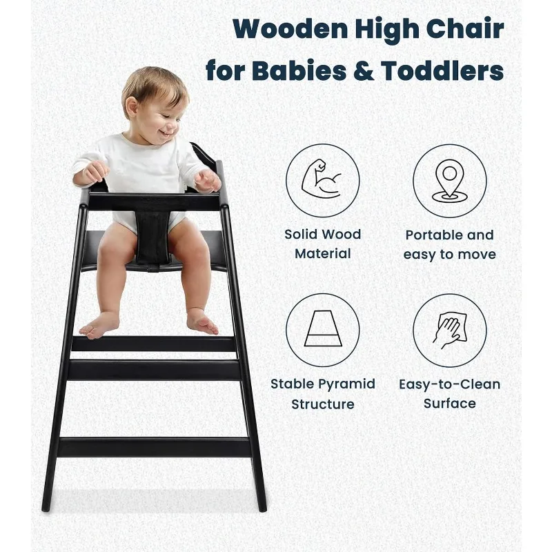- Durable Construction: Crafted from high-quality, durable wood with a sleek black finish, this high chair is designed to withstand the rigors of daily use while maintaining a stylish appearance.