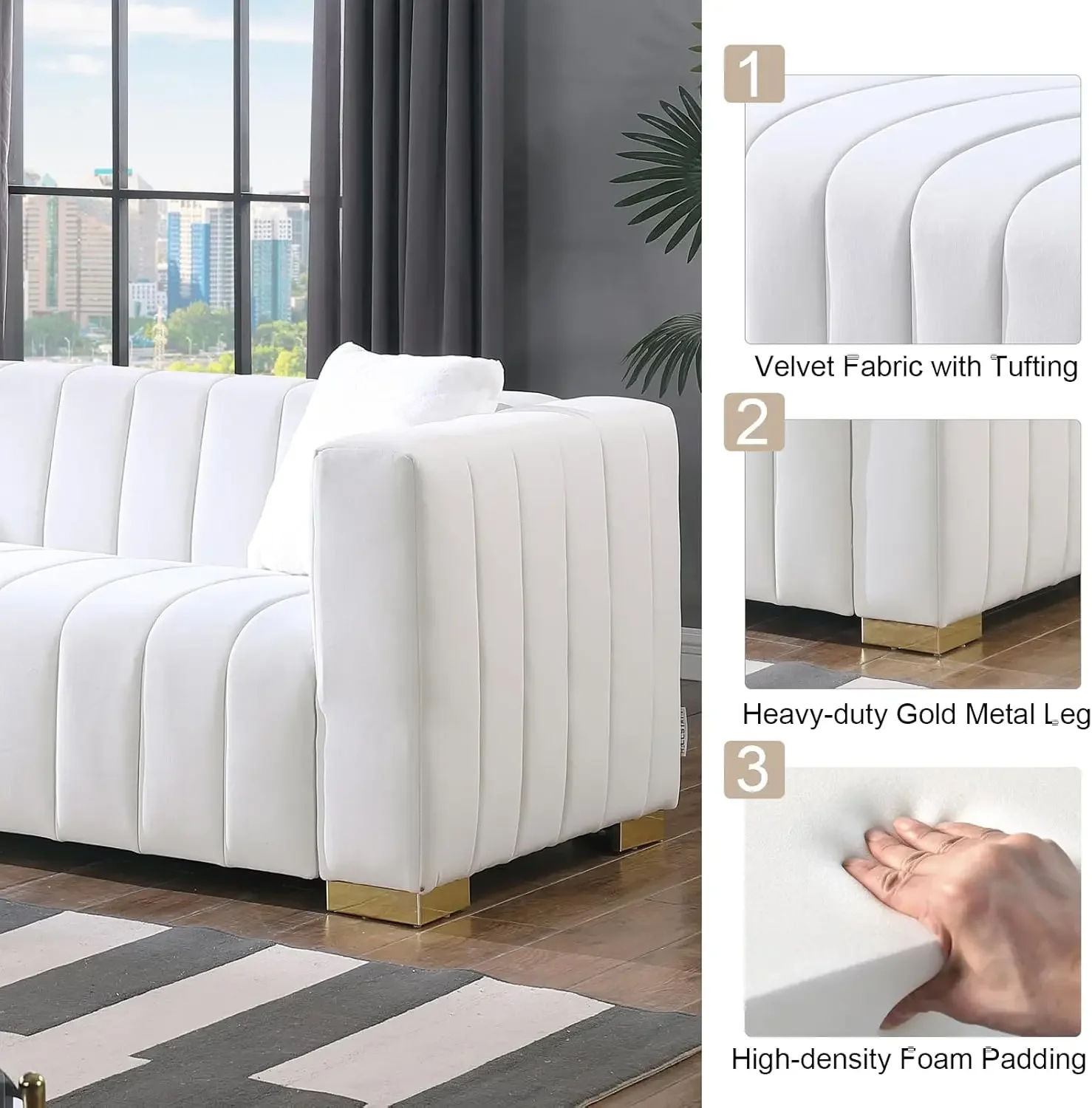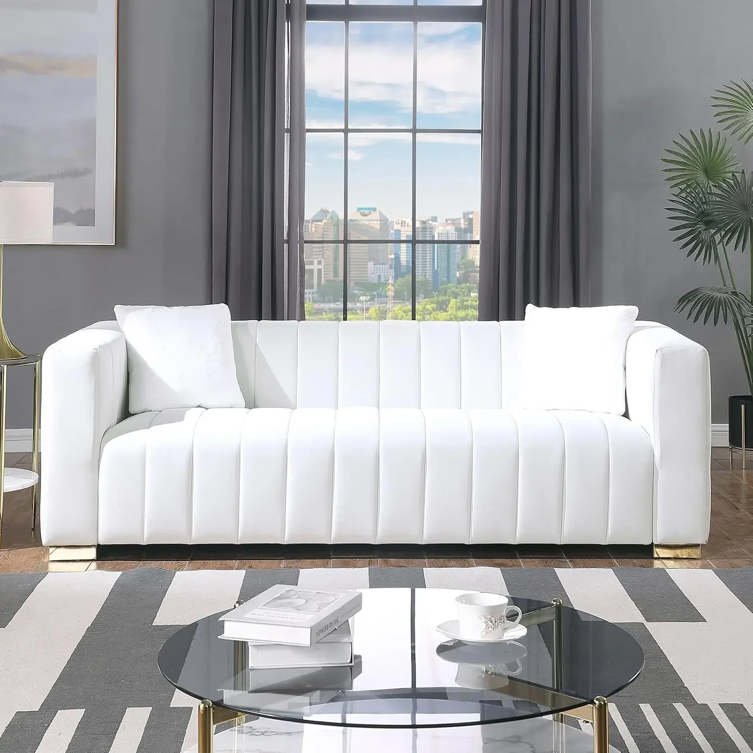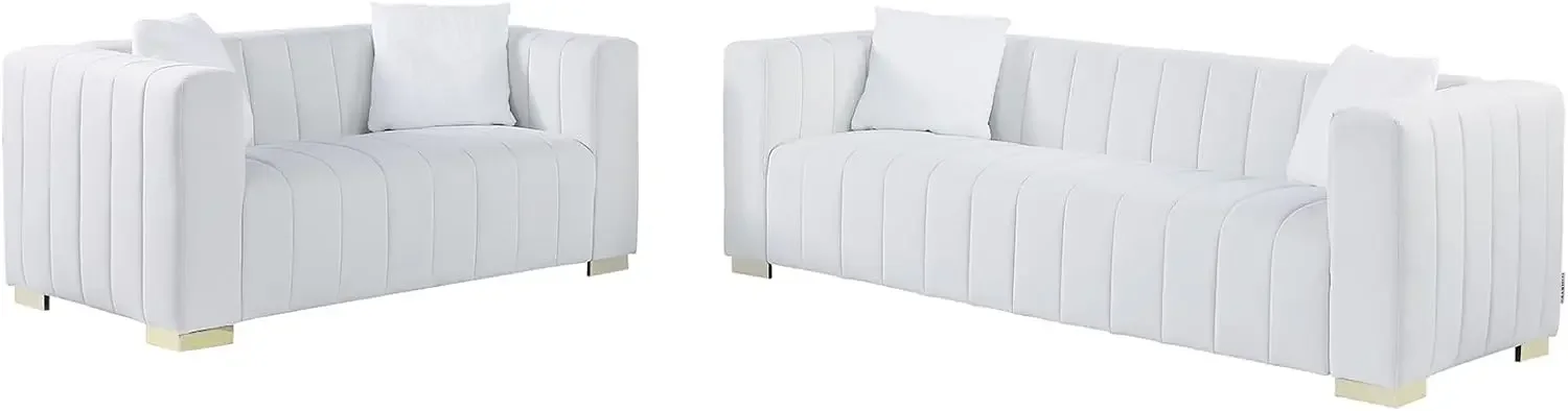 Living Room Furniture Set-2 Piece,Including Loveseat and 3-Seater Sofa Couch with Channel Tufted Velvet Fabric,4 Pillows,White