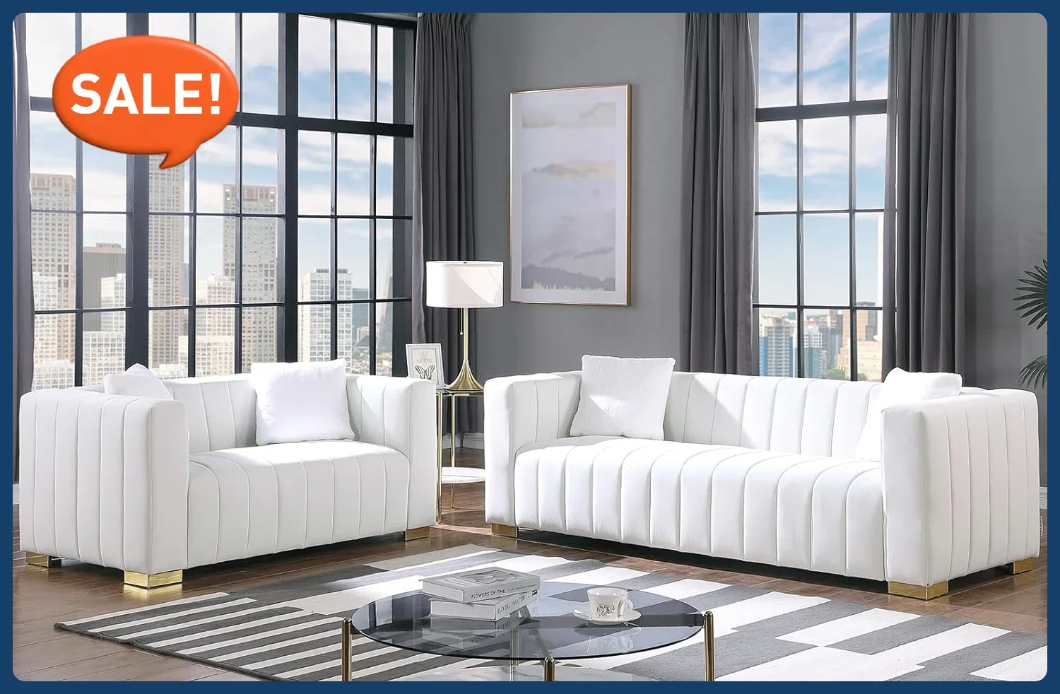 • Luxury Look – Clean lines and elegant channel tufted design, square armrest, and wide gold metal legs give this sofa and loveseat set a luxurious and stately appeal. It is designed to impress your modern living room as an elegant stunner.